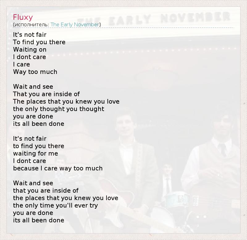 Это интересно:The Early November собрались городе Хаммонтон, штат Нью-Джерси, США, где Ace Enders, барабанщик Jeff Krummer и басист Sergio Anello впервые попробывали играть вместе. Позже к ним присоединился гитарист Joe Marro. После того, как ребята отослали своё демо в Drive Thru Records, им тут же предложили контракт. В пределах нескольких месяцев их EP For All Of This был записан в оригинальной и акустической версии. В то же время аудитория по... продолжение