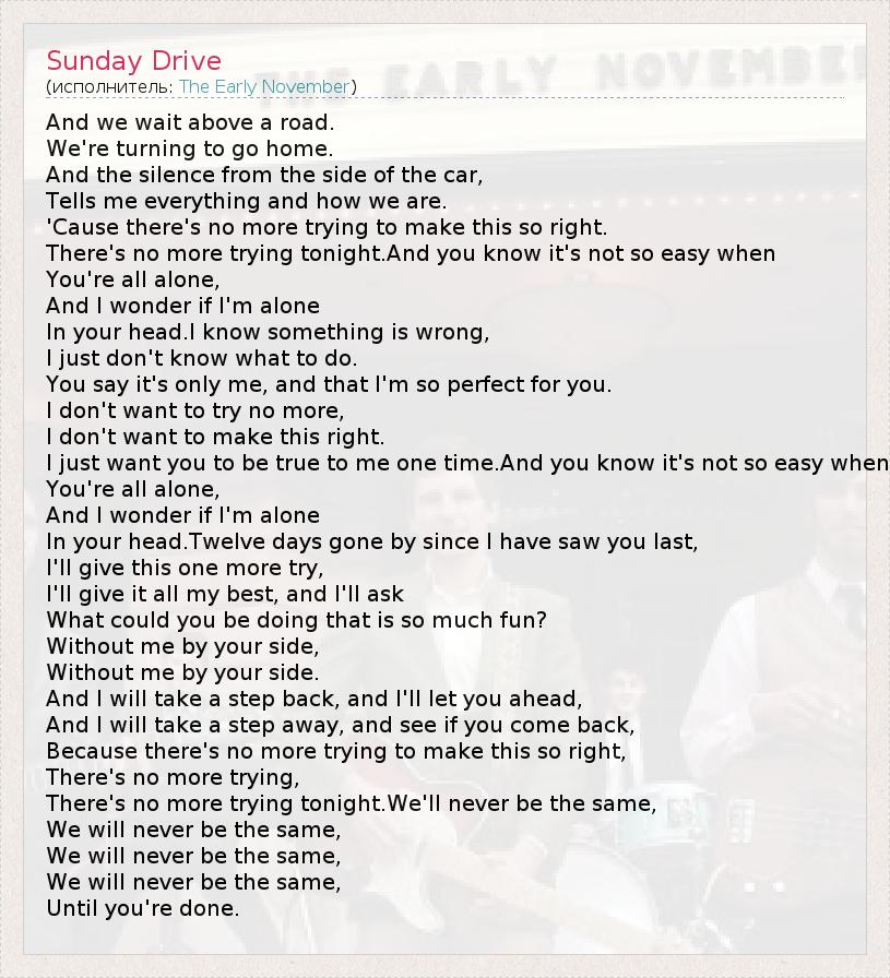 А как ты думаешь, о чем песня "Sunday Drive" ?
