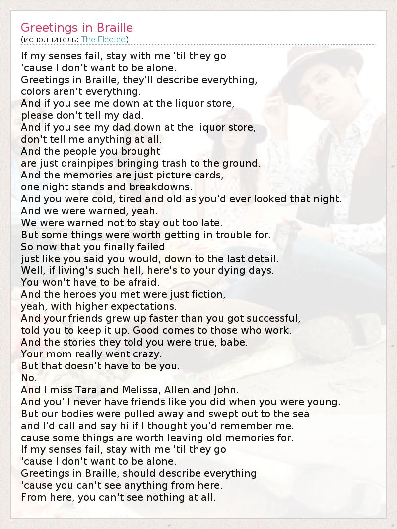 А как ты думаешь, о чем песня "Greetings in Braille" ?
