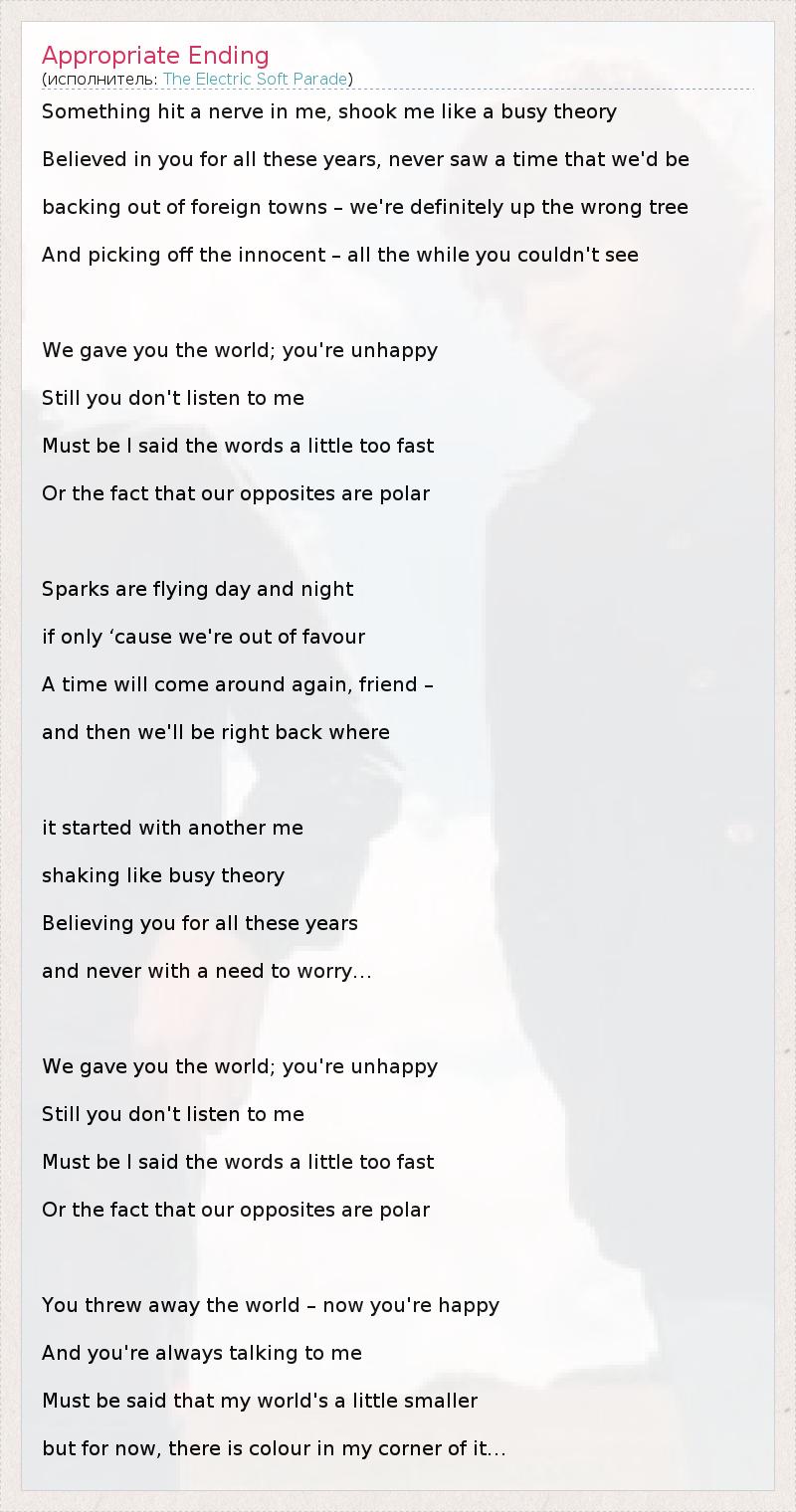 А как ты думаешь, о чем песня "Appropriate Ending" ?