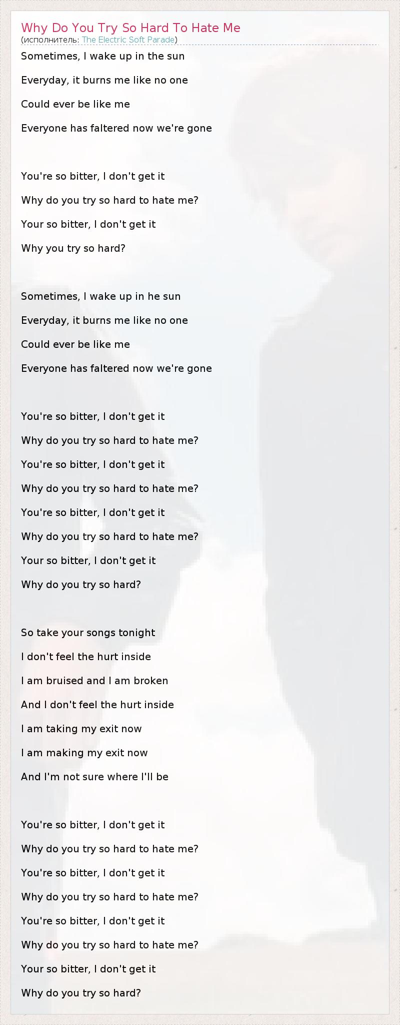 А как ты думаешь, о чем песня "Why Do You Try So Hard To Hate Me" ?