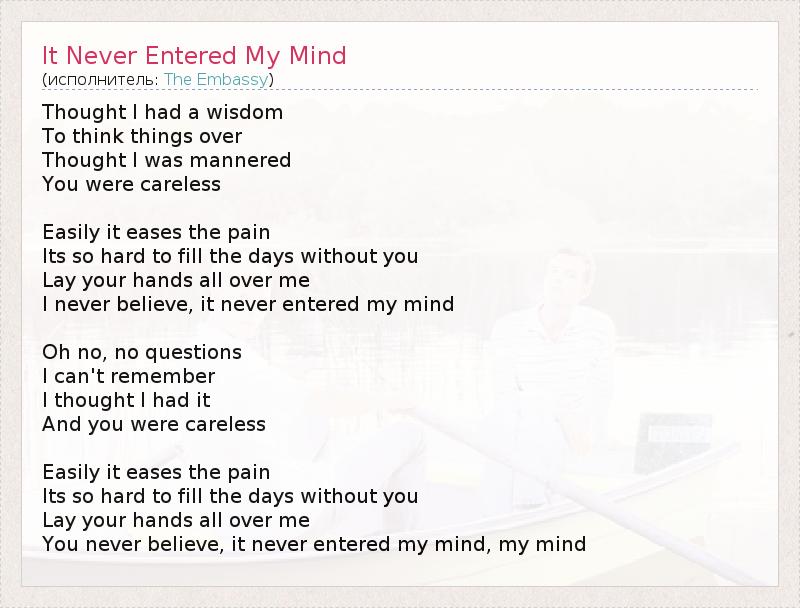 А как ты думаешь, о чем песня "It Never Entered My Mind" ?