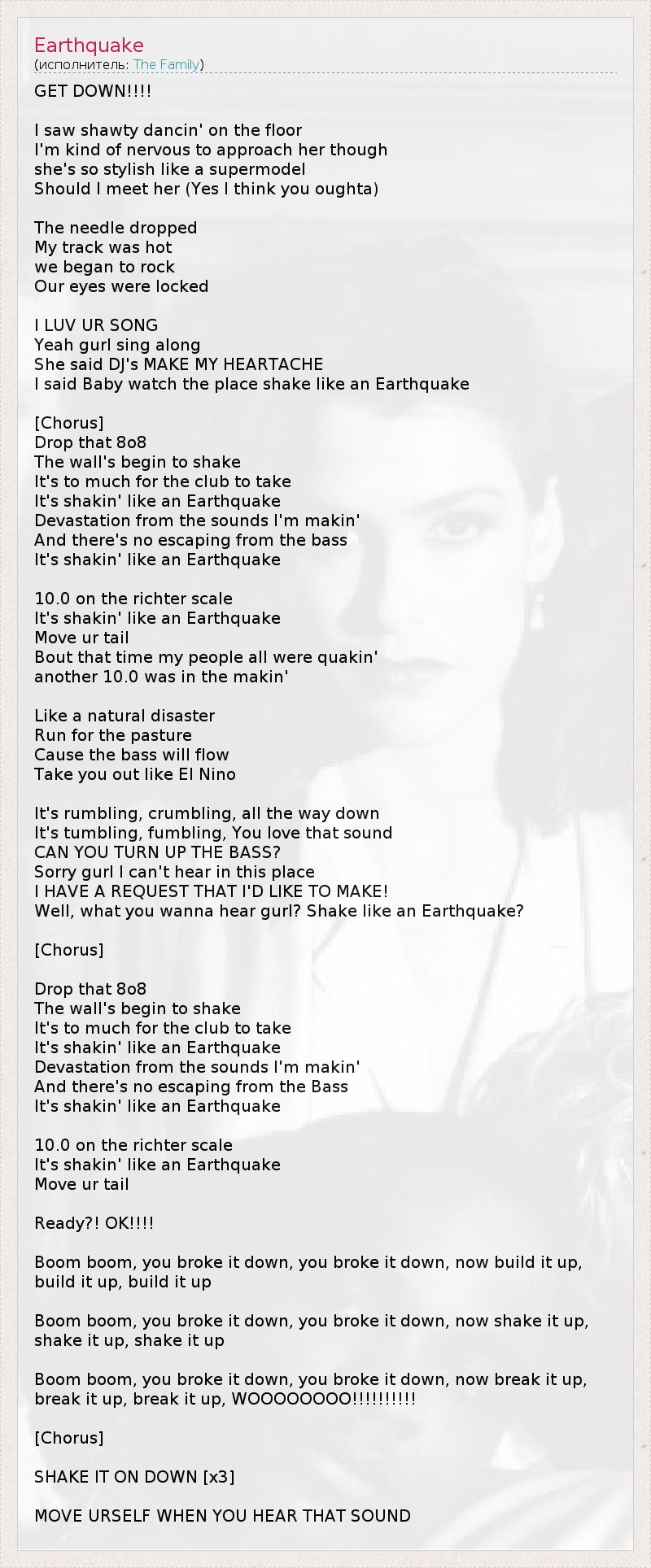 Well, what you wanna hear gurl? Shake like an Earthquake?