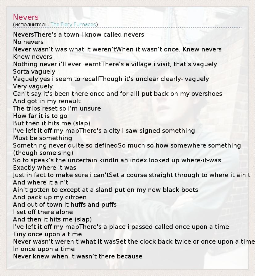 Never wasn't was what it weren'tWhen it wasn't once. Knew nevers