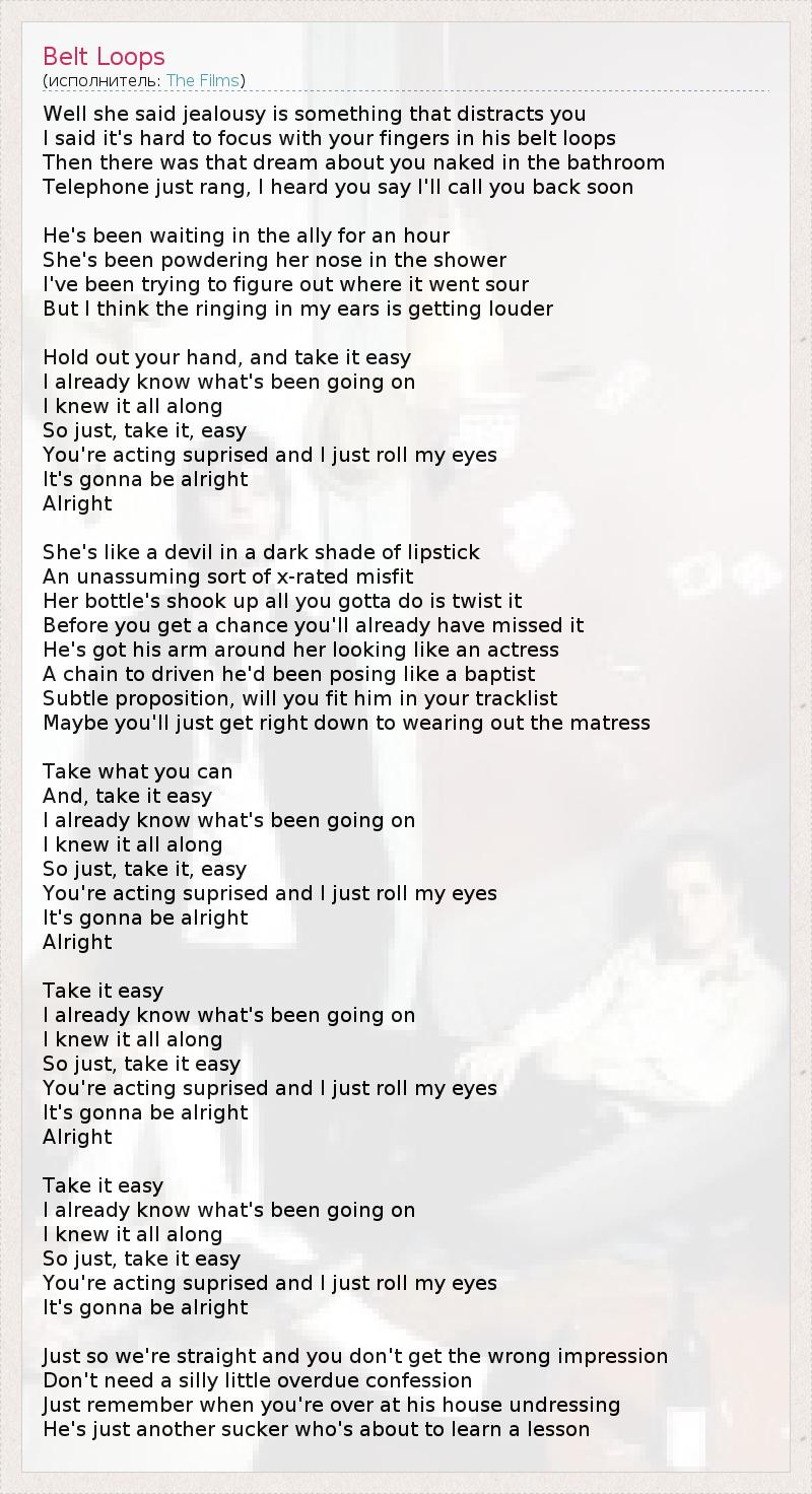 А как ты думаешь, о чем песня "Belt Loops" ?