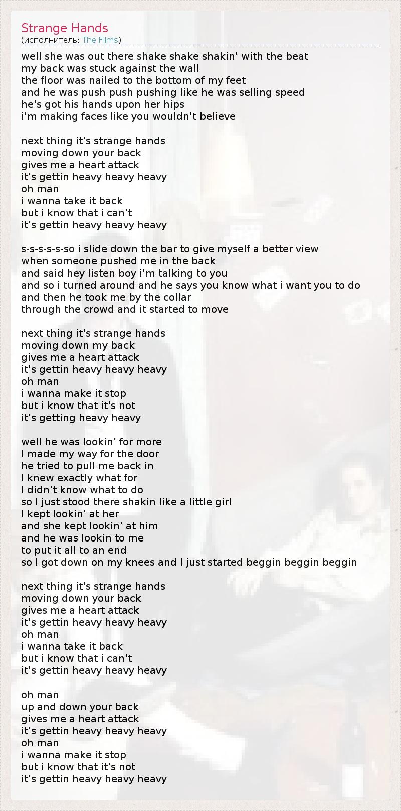 А как ты думаешь, о чем песня "Strange Hands" ?