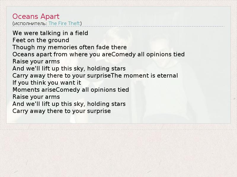 А как ты думаешь, о чем песня "Oceans Apart" ?
