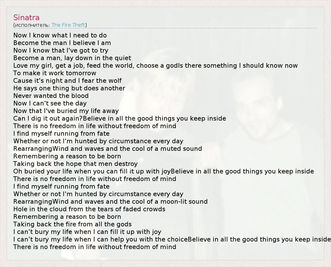 А как ты думаешь, о чем песня "Sinatra" ?