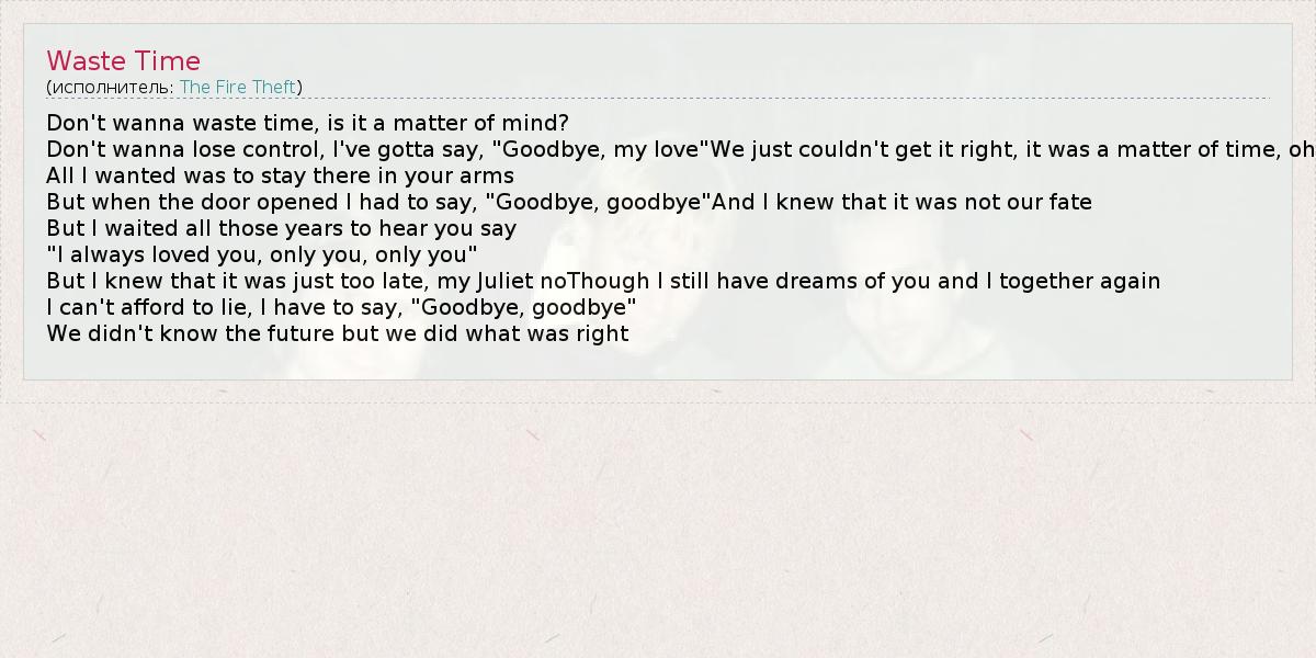 Это интересно:Группа "The Fire Theft" образована в 2001 году Нэйтом Мэнделом, Джереми Иником и Уильямом Голдсмитом в городе Сиэтл, штат Вашингтон, бывшими участниками группы "Sunny Day Real Estate".23 сентября 2003 года группа выпустила свой первый одноименный альбом.13 января 2004 года в свет вышел их EP "Hands on You".