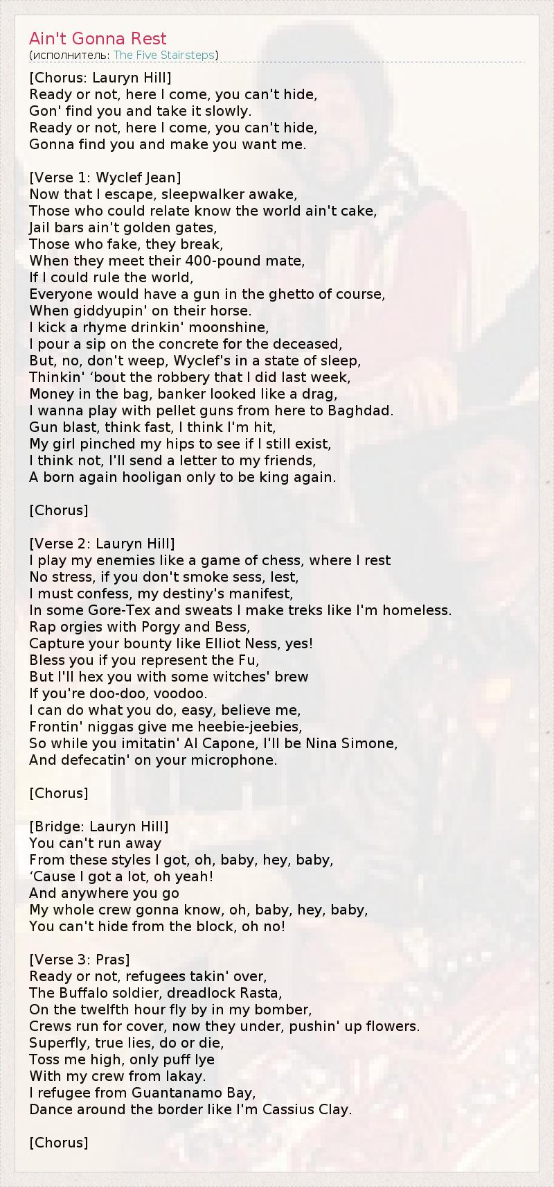 А как ты думаешь, о чем песня "Ain't Gonna Rest" ?