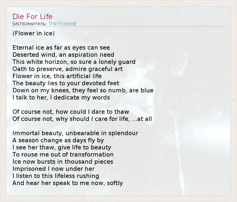 А как ты думаешь, о чем песня "Die For Life" ?