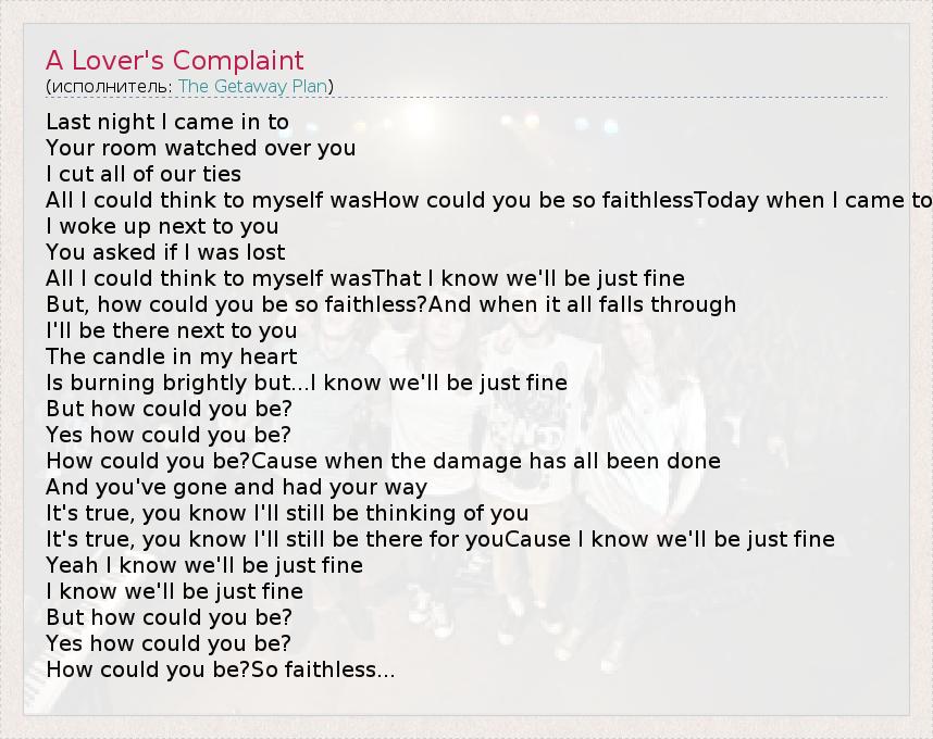 А как ты думаешь, о чем песня "A Lover's Complaint" ?