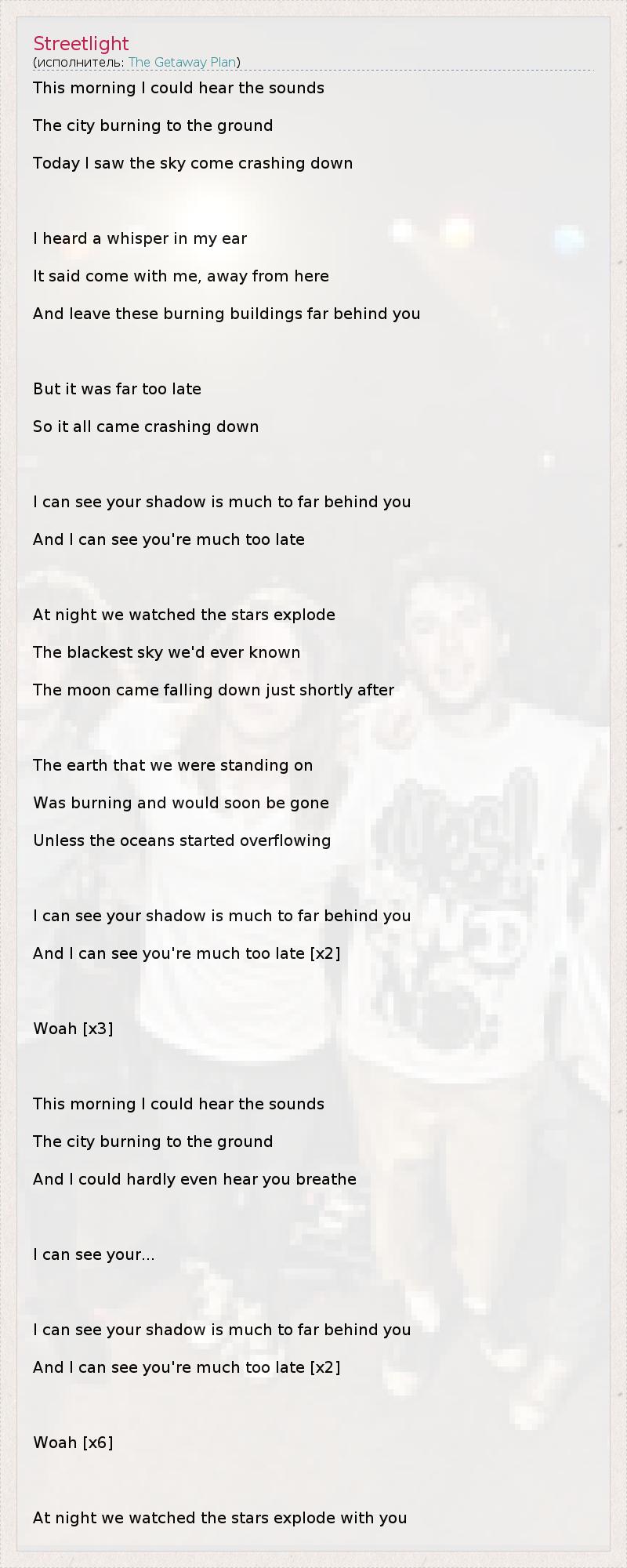 Это интересно:The Getaway Plan - австралийская альтернативная рок-группа из Мельбурна, штат Виктория, образованая в 2004 году. Состав группы сложился таким образом: вокалист и гитарист Matthew Wright, гитарист Clint Splattering, басист Dave Anderson и барабанщик Aaron Barnett.Их дебютный релиз был демо в 2004 году. В 2006 году группа подписала контракт с Boomtown Records и выпустили свой дебютный релиз, EP под названием "Hold... продолжение