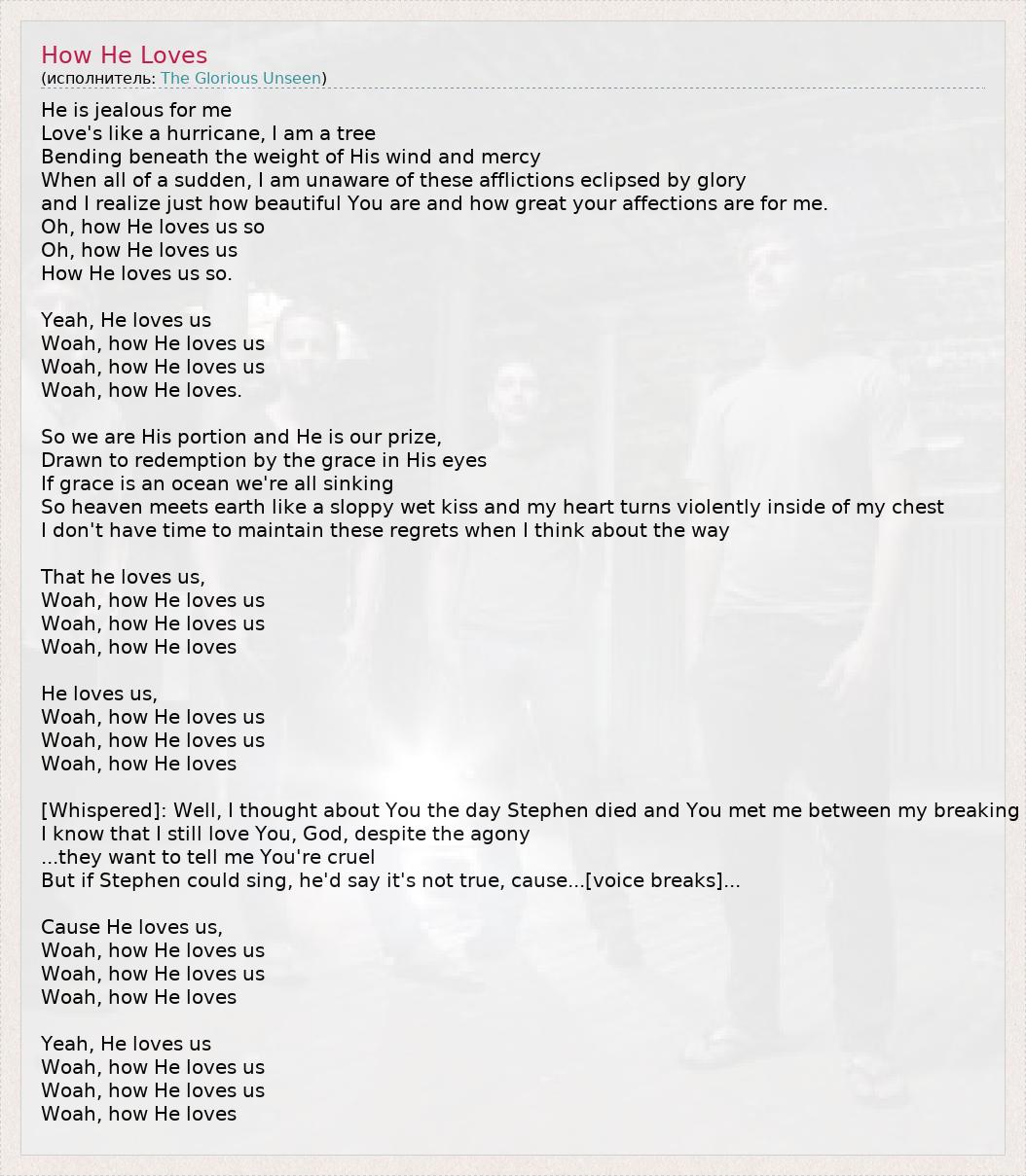 Это интересно:MEMBERS:Ben Crist - Vocals, GuitarRyan Stubbs - GuitarBen Harms - BassJon Todryk - DrumsAdam Smith - keys, guitarsPatrick Copeland - PianoBIOGRAPHY:Like so many college students have during the course of their studies, The Glorious Unseen’s frontman Ben Crist also struggled with that one big question while attending Nashville’s Belmont University: What am I supposed to do with my life?If figuring that out wasn’t already complicated enough, Ben was in the midst of a breakup with his first serious girlfriend, while his home church was enduring an equally excruciating split of its own. Left without a community of believers to connect with... продолжение