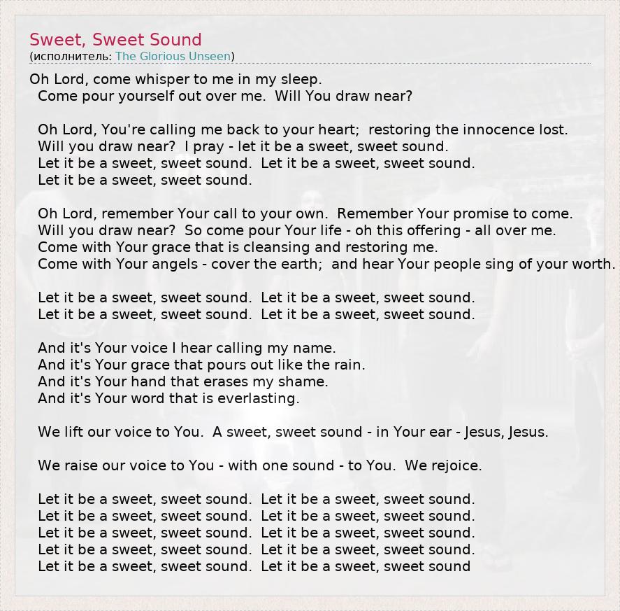 А как ты думаешь, о чем песня "Sweet, Sweet Sound" ?