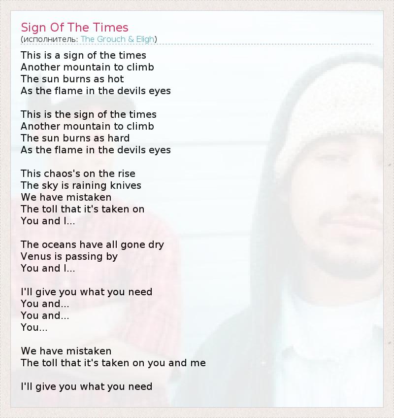А как ты думаешь, о чем песня "Sign Of The Times" ?