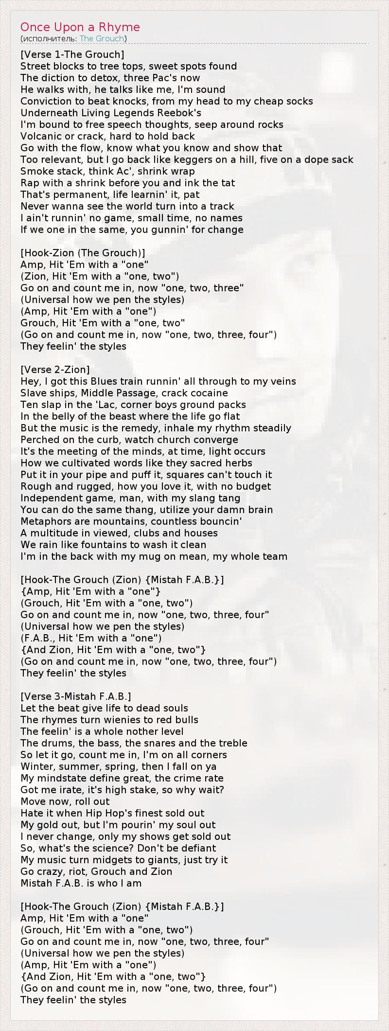А как ты думаешь, о чем песня "Once Upon a Rhyme" ?