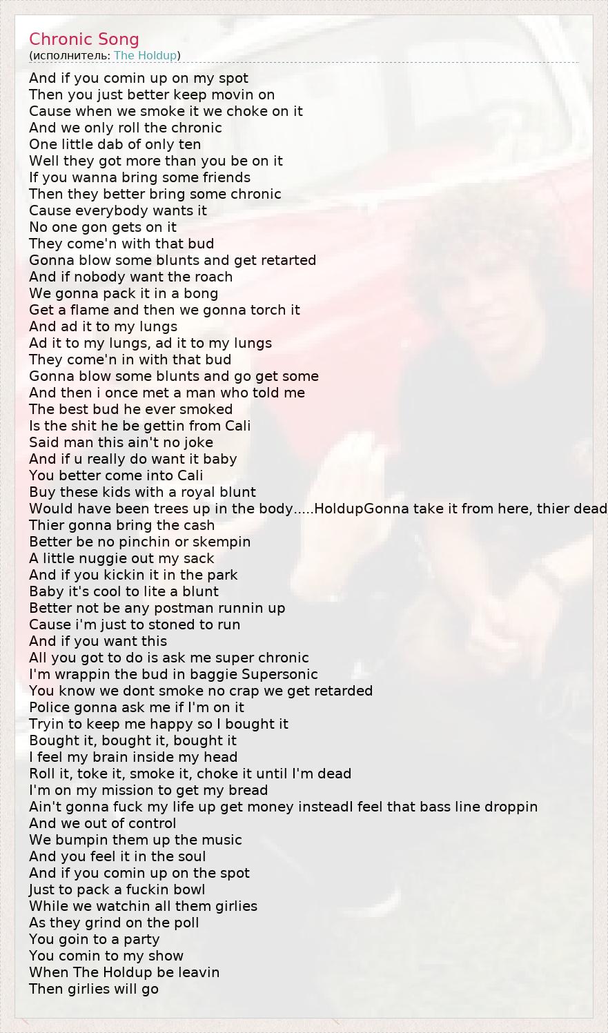 А как ты думаешь, о чем песня "Chronic Song" ?