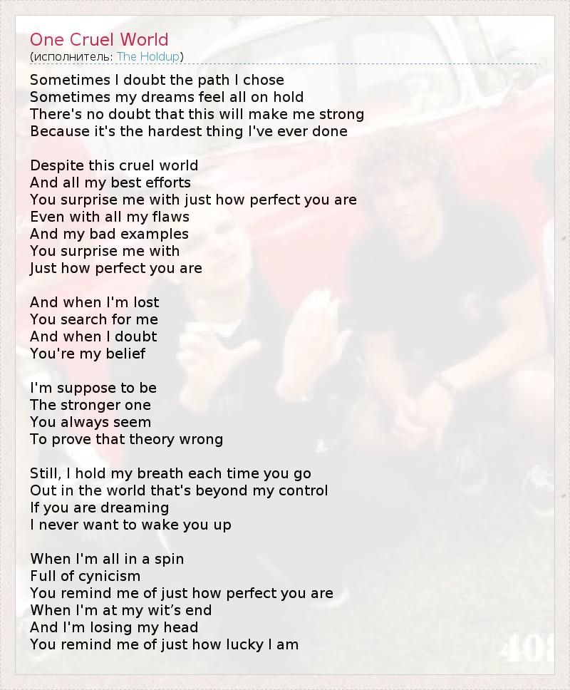 А как ты думаешь, о чем песня "One Cruel World" ?