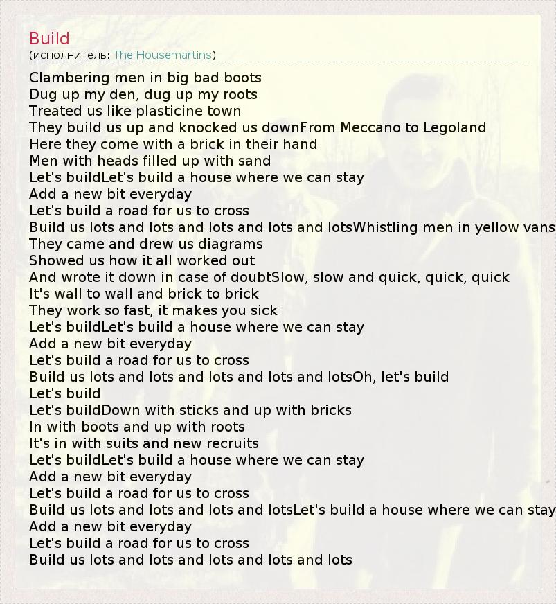 Build us lots and lots and lots and lots and lotsOh, let's build