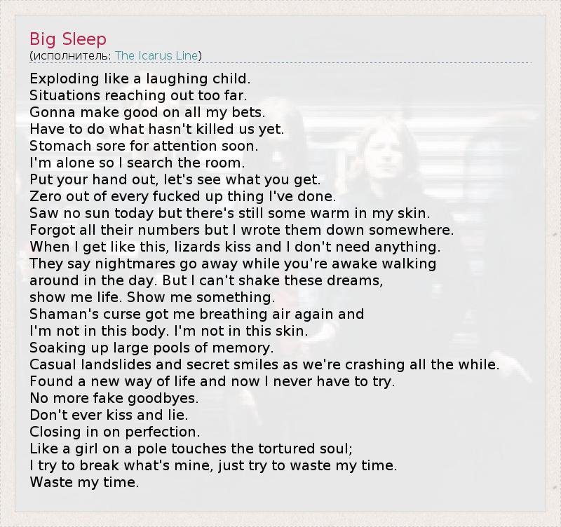 А как ты думаешь, о чем песня "Big Sleep" ?