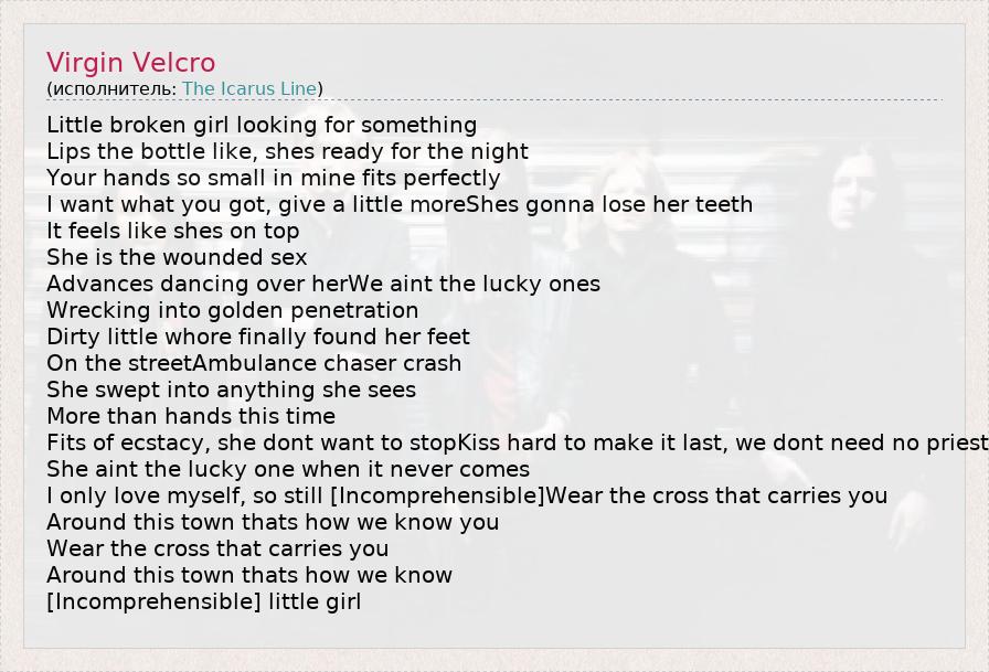 А как ты думаешь, о чем песня "Virgin Velcro" ?