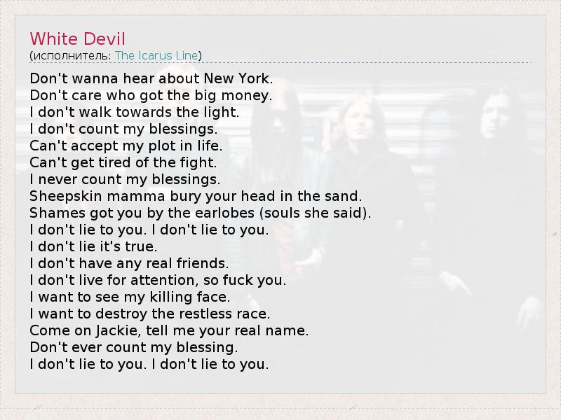 А как ты думаешь, о чем песня "White Devil" ?