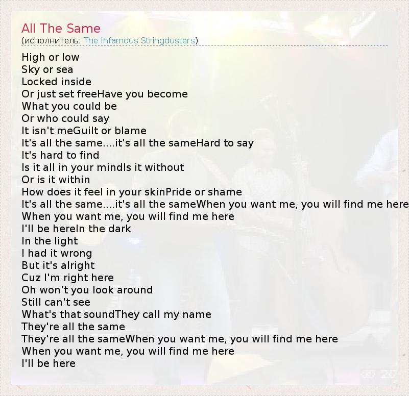 А как ты думаешь, о чем песня "All The Same" ?