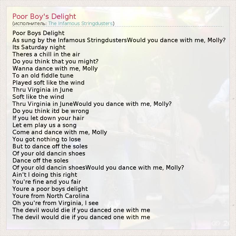 А как ты думаешь, о чем песня "Poor Boy's Delight" ?