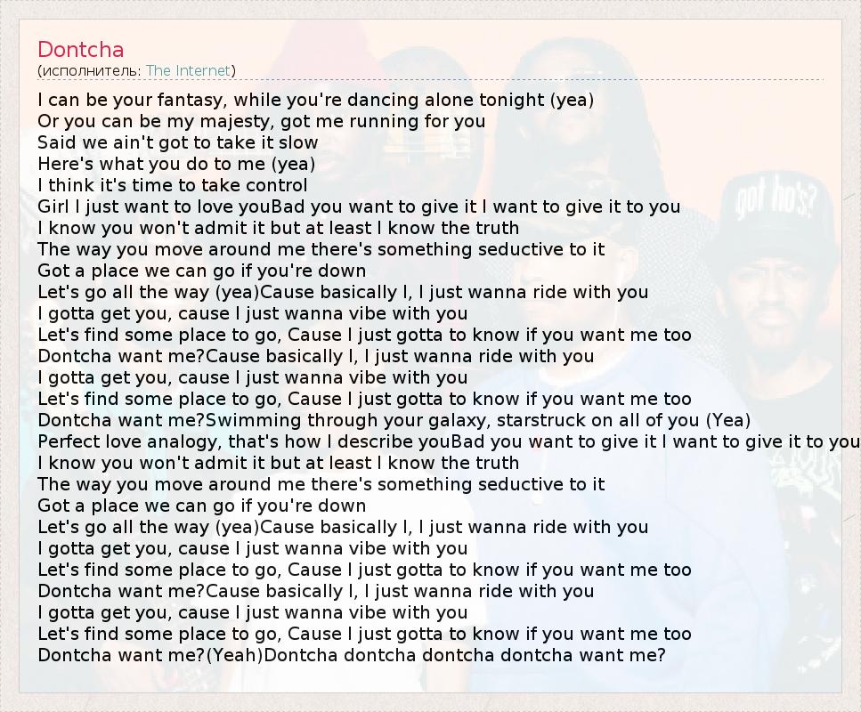 Dontcha want me?(Yeah)Dontcha dontcha dontcha dontcha want me?