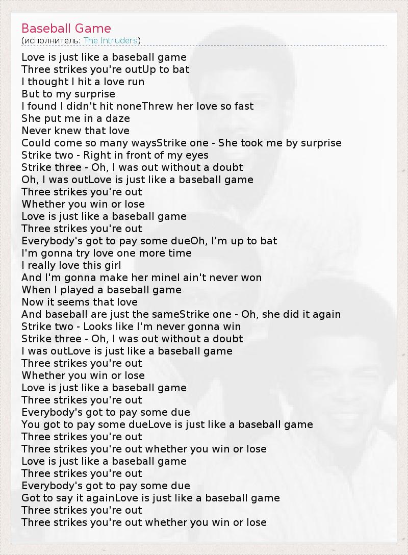 А как ты думаешь, о чем песня "Baseball Game" ?