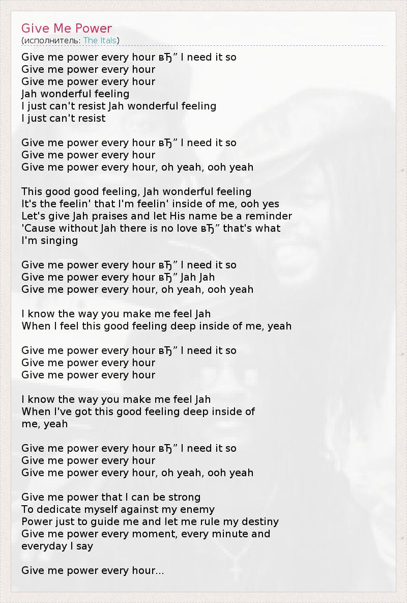 А как ты думаешь, о чем песня "Give Me Power" ?