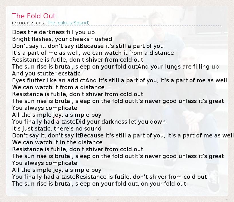 А как ты думаешь, о чем песня "The Fold Out" ?