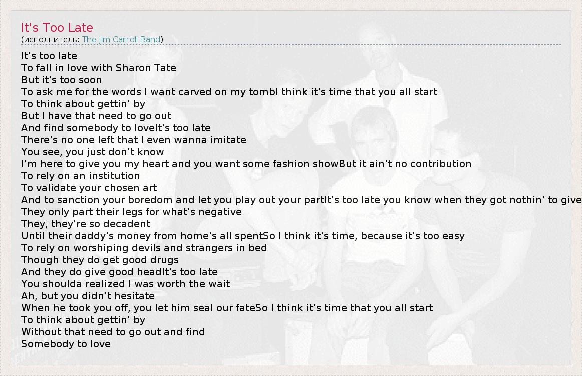 А как ты думаешь, о чем песня "It's Too Late" ?
