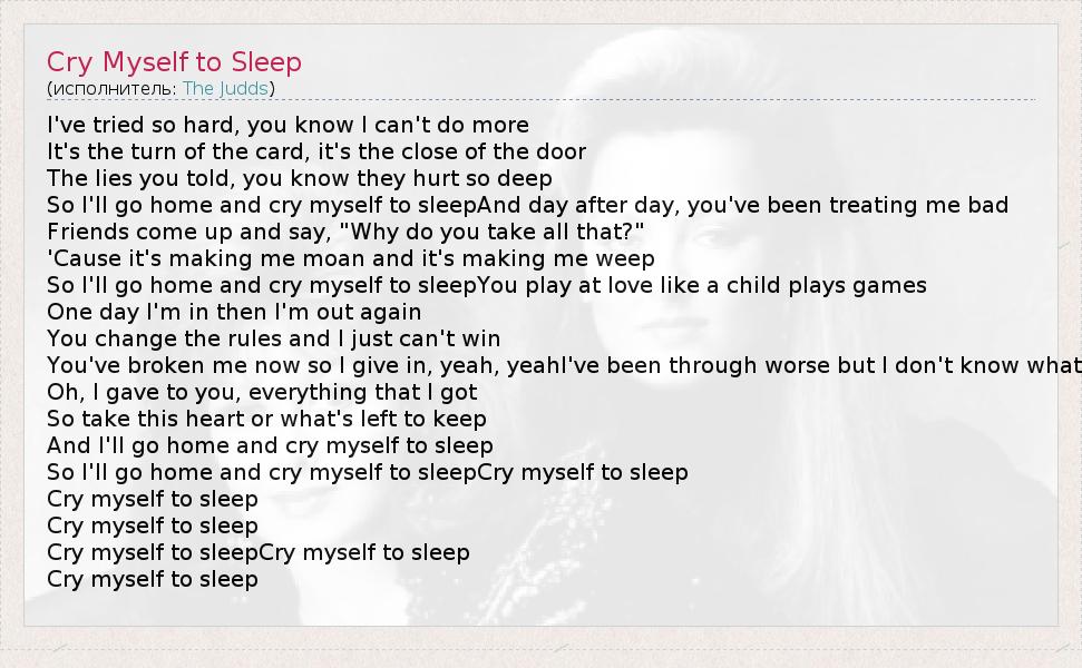 А как ты думаешь, о чем песня "Cry Myself to Sleep" ?