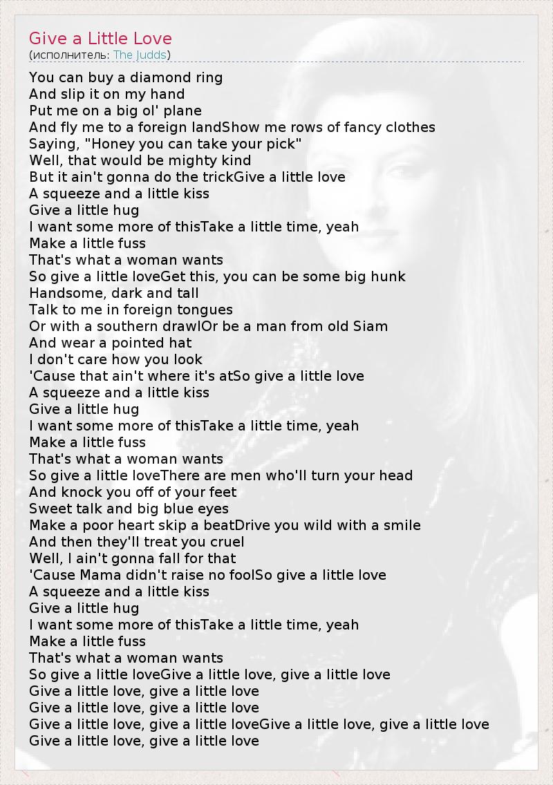 А как ты думаешь, о чем песня "Give a Little Love" ?