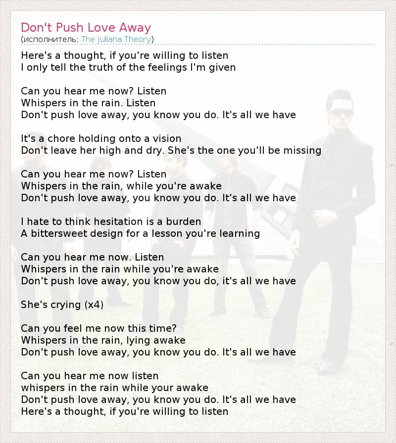 А как ты думаешь, о чем песня "Don't Push Love Away" ?