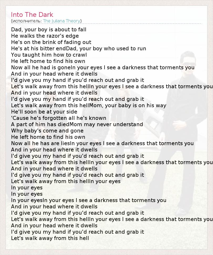 А как ты думаешь, о чем песня "Into The Dark" ?