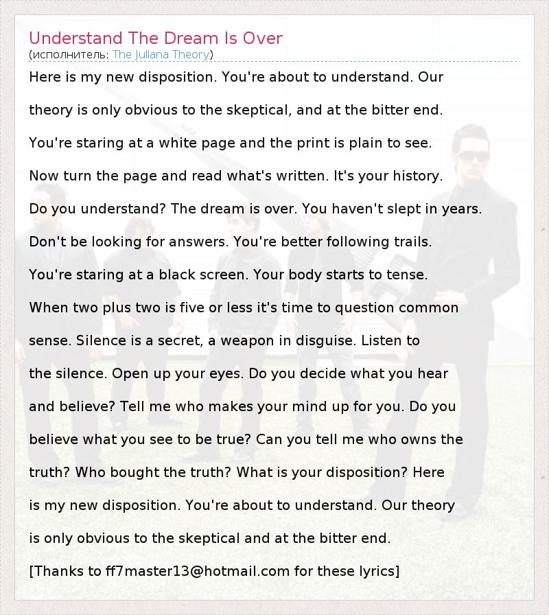 А как ты думаешь, о чем песня "Understand The Dream Is Over" ?
