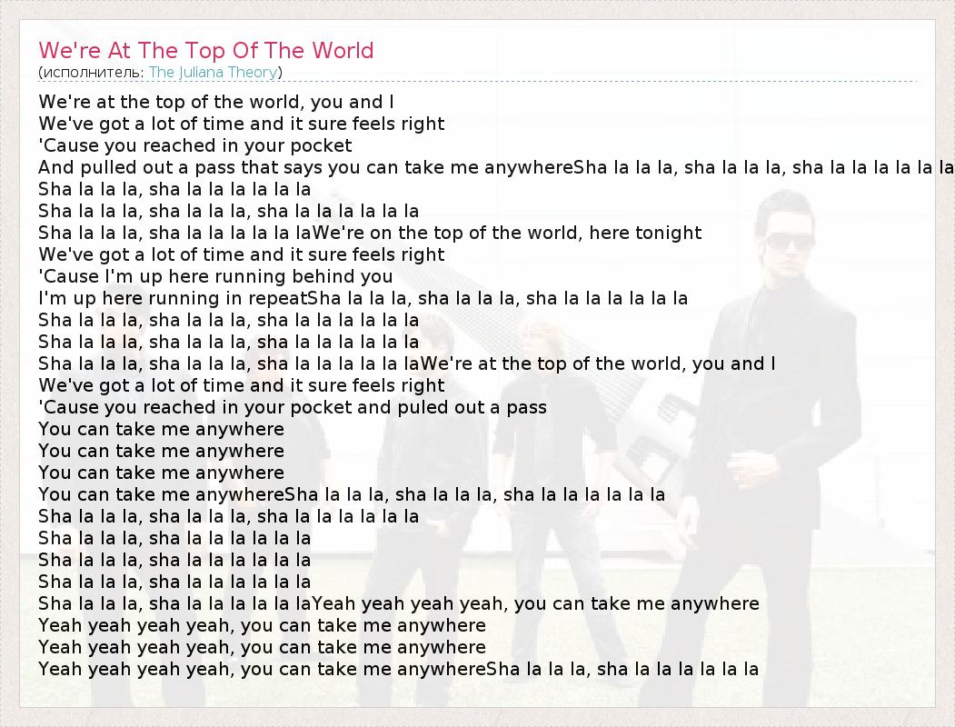 ГлавнаяИсполнителиThe Juliana TheoryWe're At The Top Of The World