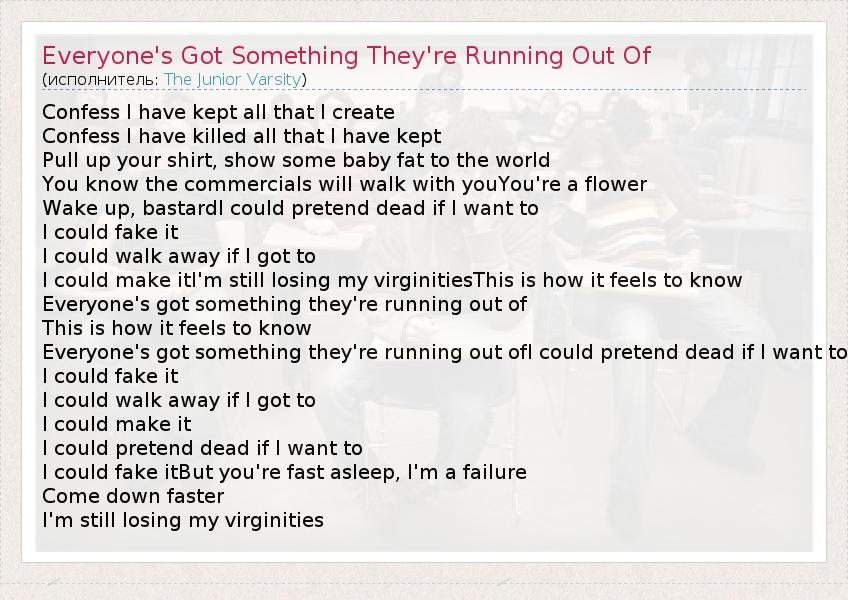 ГлавнаяИсполнителиThe Junior VarsityEveryone's Got Something They're Running Out Of