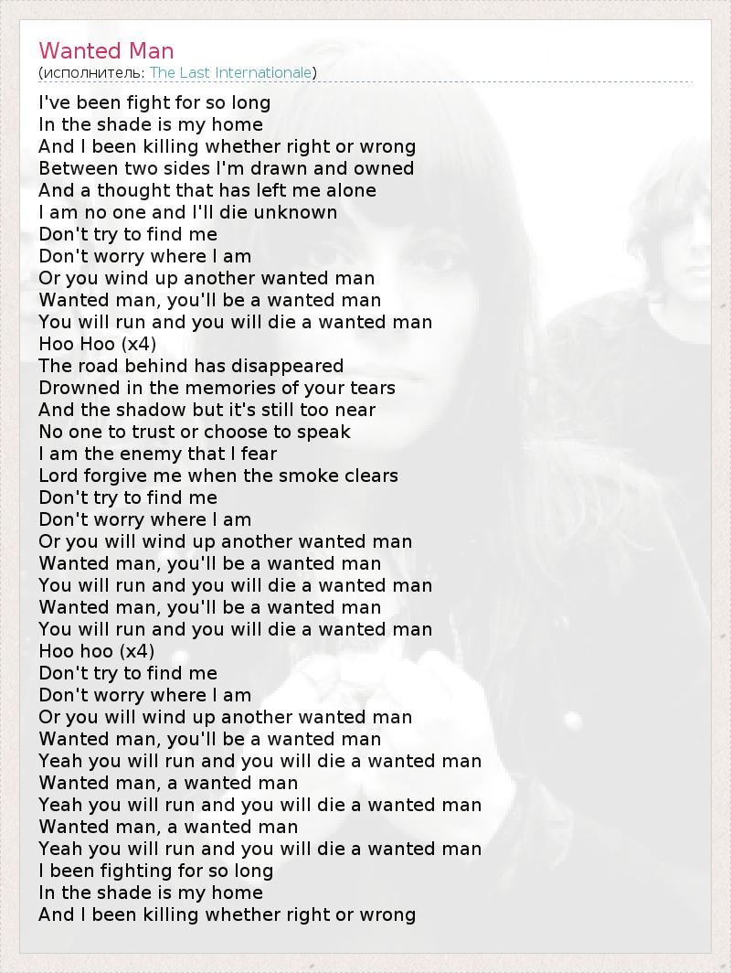 А как ты думаешь, о чем песня "Wanted Man" ?