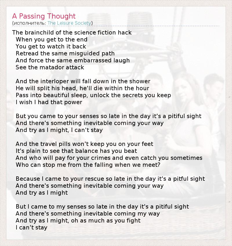А как ты думаешь, о чем песня "A Passing Thought" ?