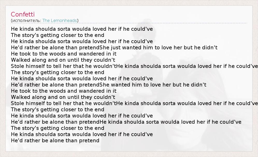 He'd rather be alone than pretendHe kinda shoulda sorta woulda loved her if he could've