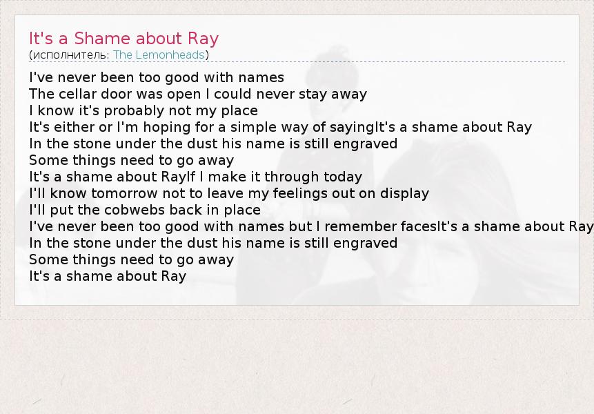 А как ты думаешь, о чем песня "It's a Shame about Ray" ?