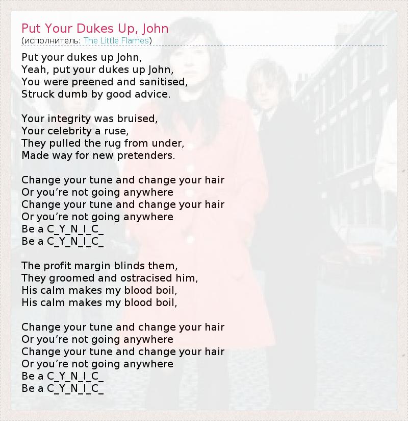 А как ты думаешь, о чем песня "Put Your Dukes Up, John" ?