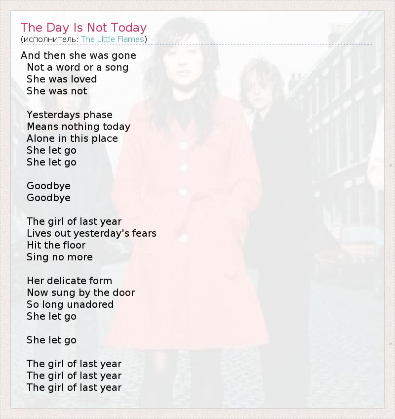 А как ты думаешь, о чем песня "The Day Is Not Today" ?