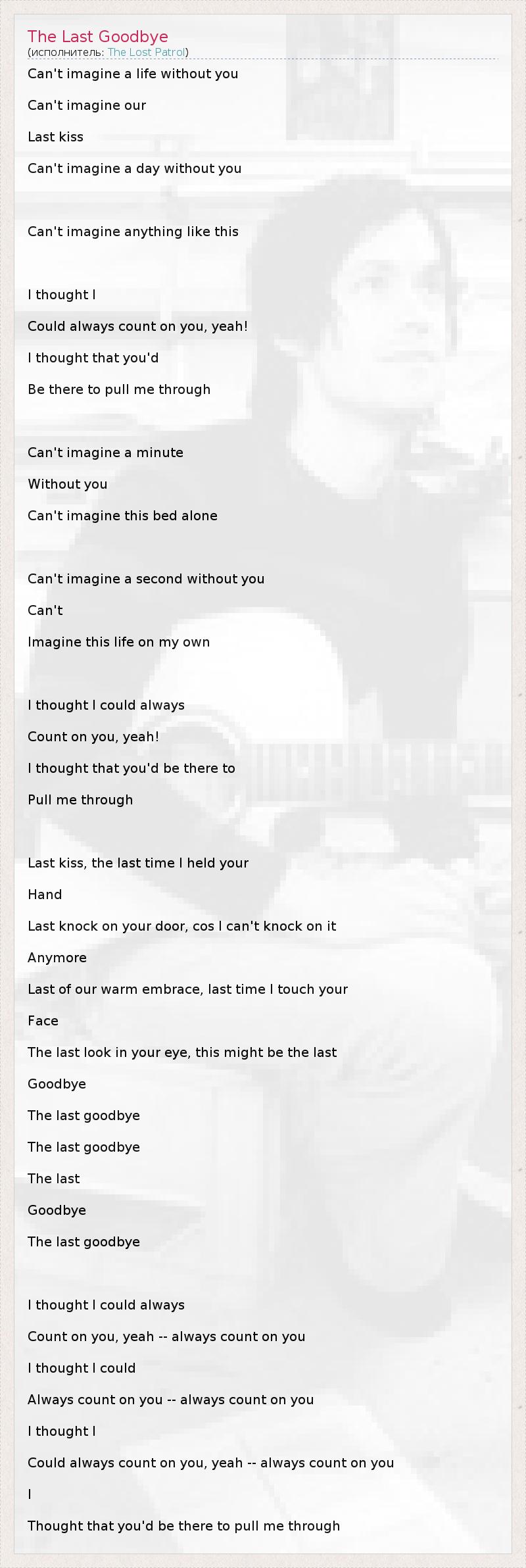 А как ты думаешь, о чем песня "The Last Goodbye" ?