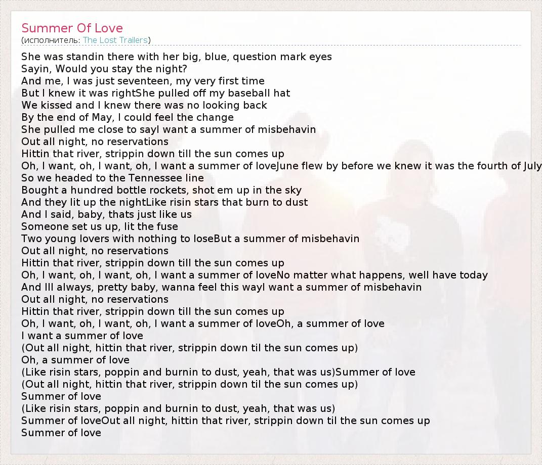 А как ты думаешь, о чем песня "Summer Of Love" ?