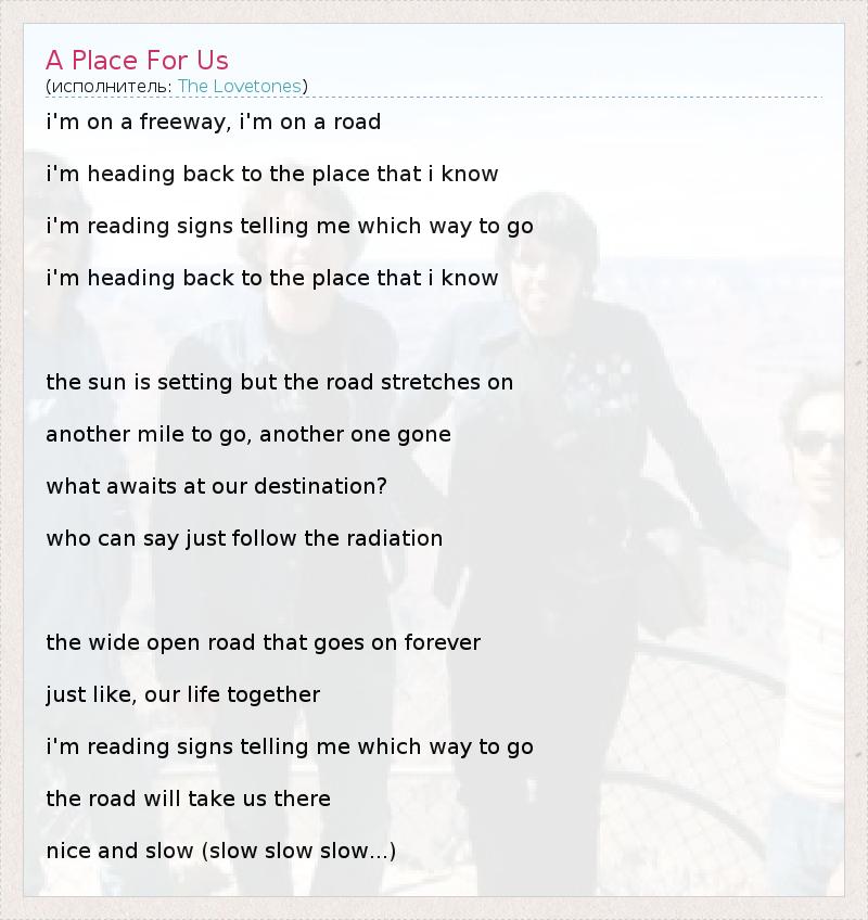 А как ты думаешь, о чем песня "A Place For Us" ?
